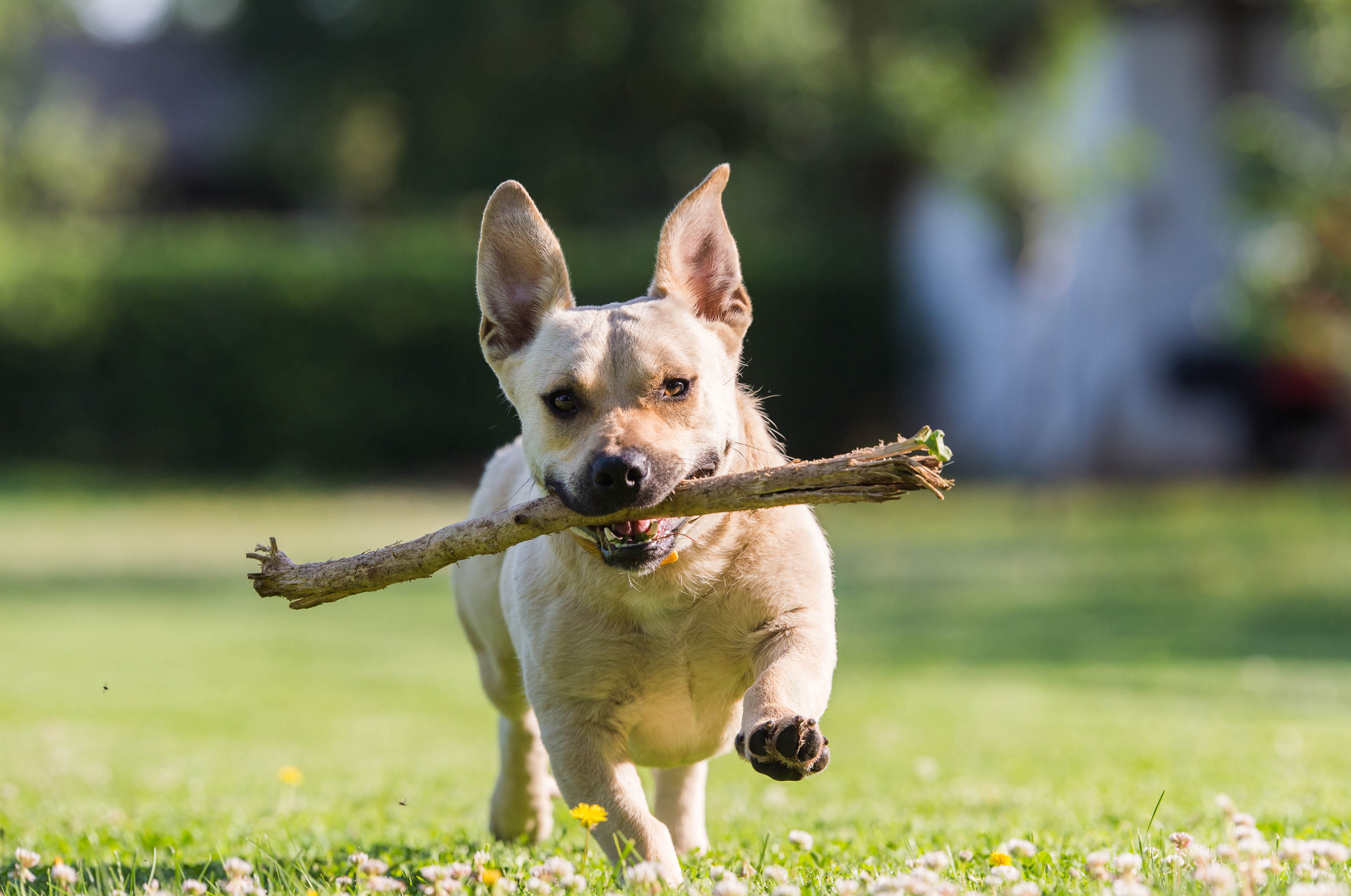 dog eating sticks
