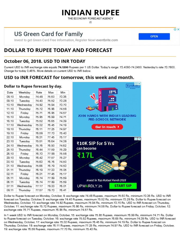 dollar to rupee forecast