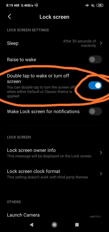 double tap to lock screen