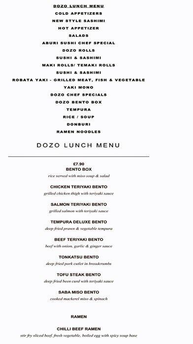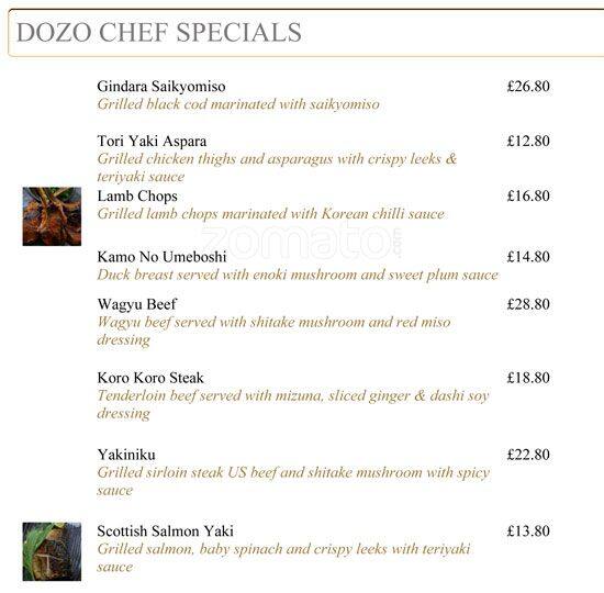 dozo menu