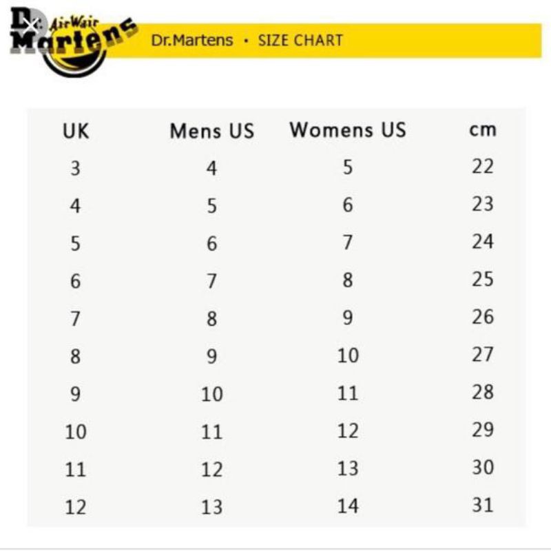 dr martens size chart