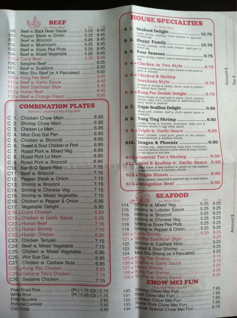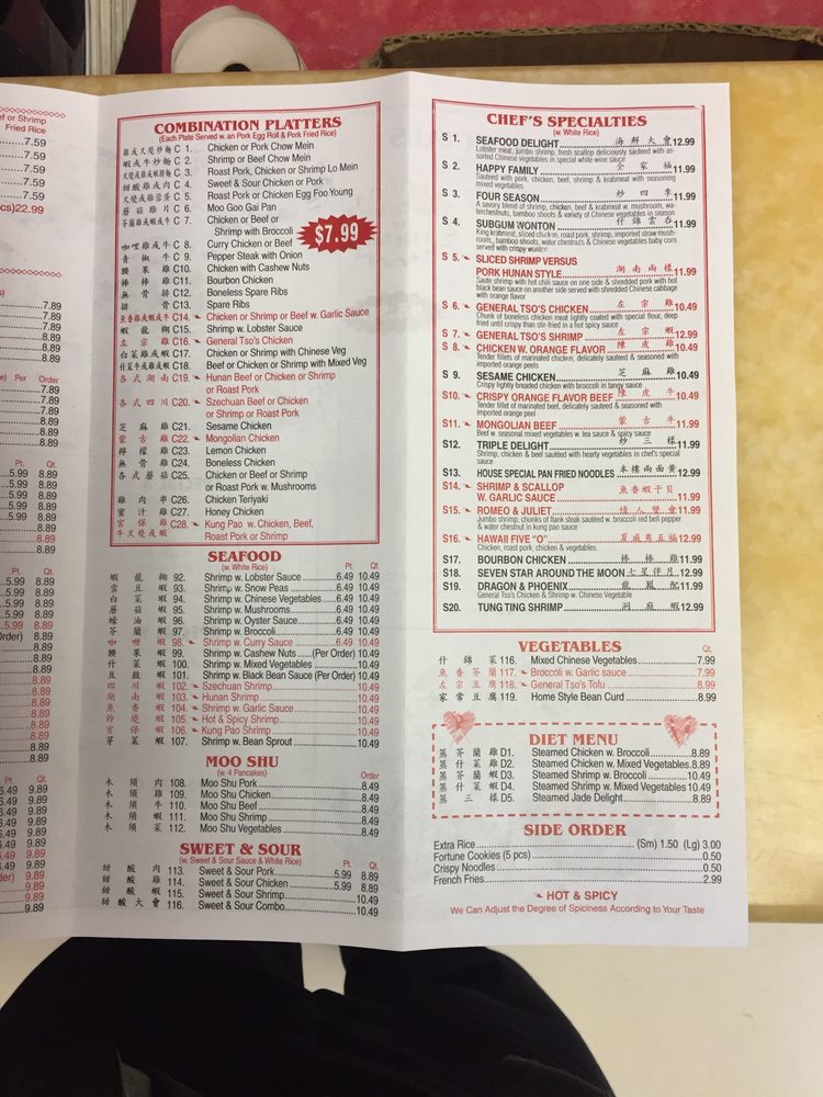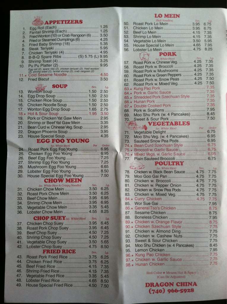 dragon china menu