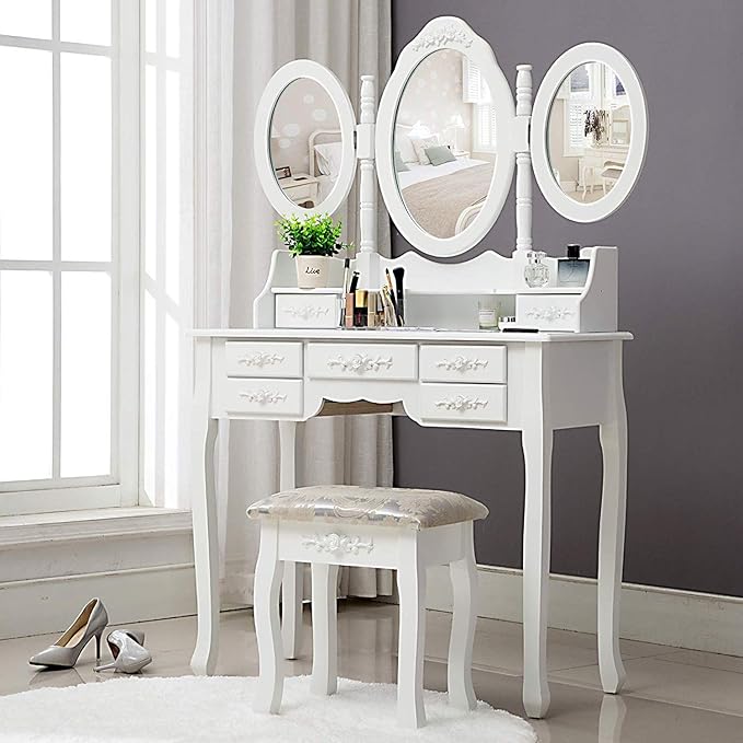 dressing table with triple mirror