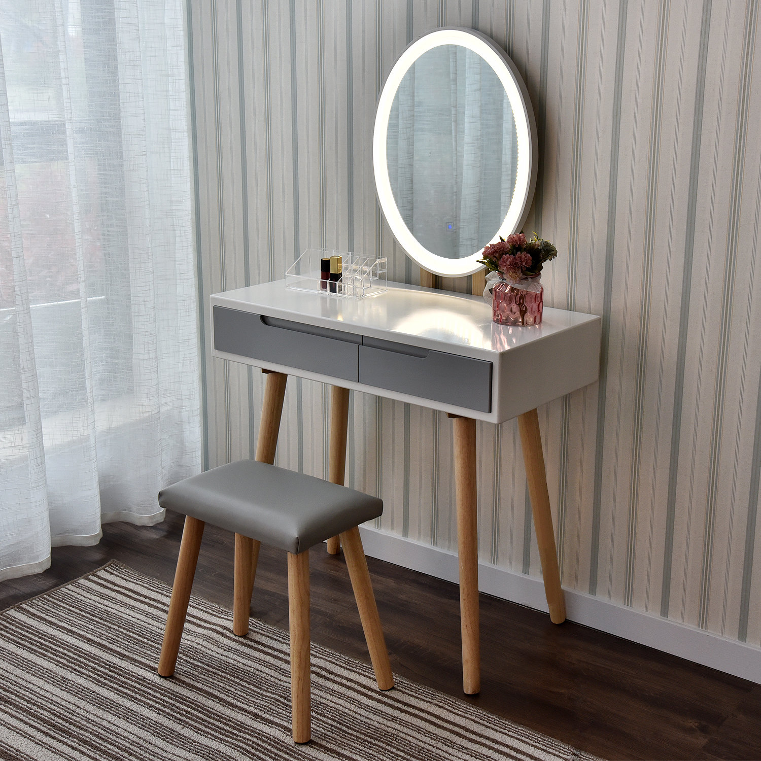 dressing table with vanity mirror