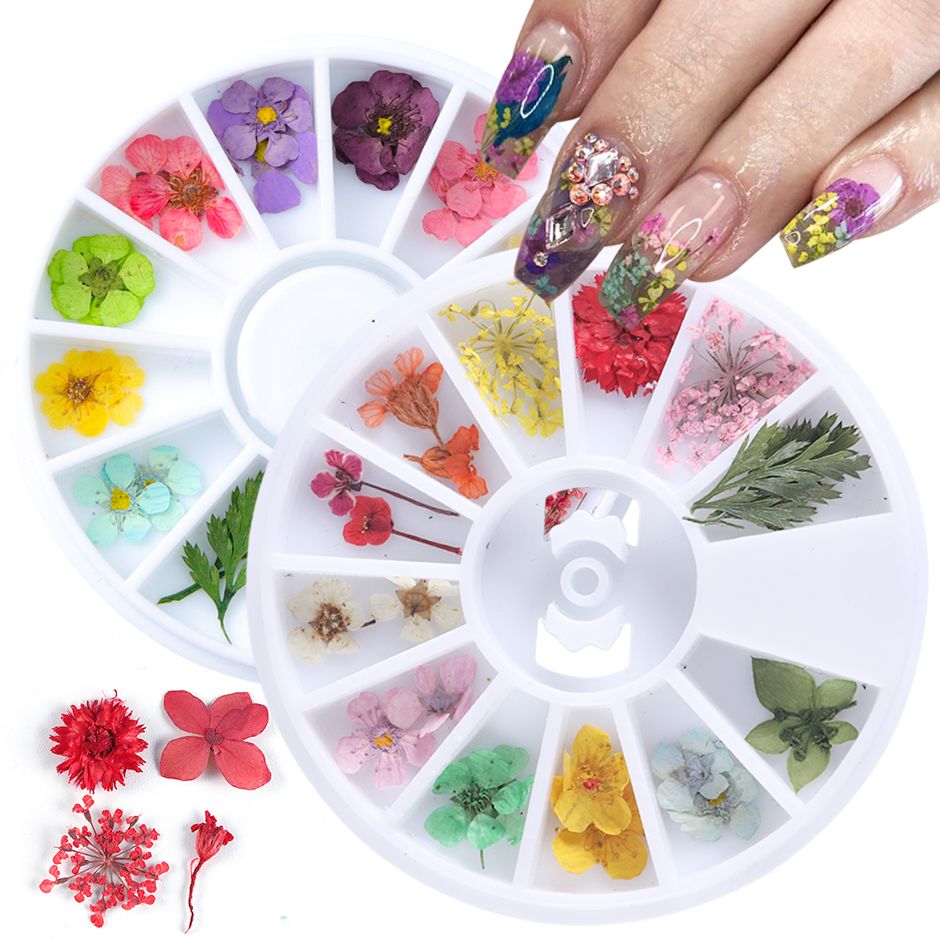 dried flowers nail art