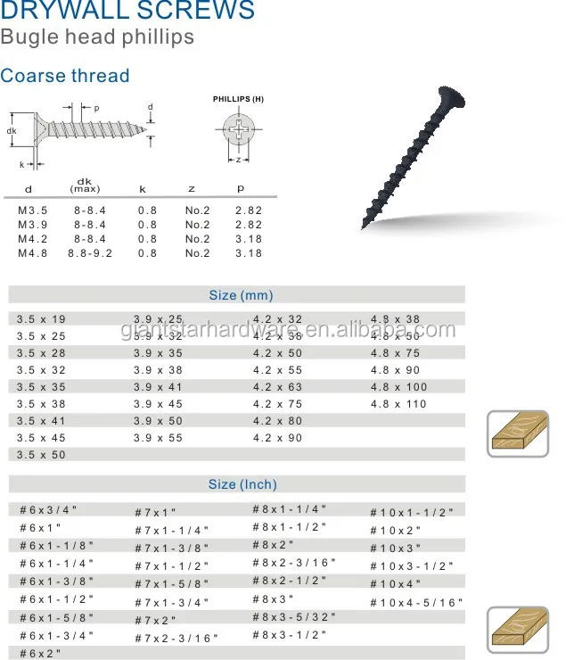 drywall screws sizes