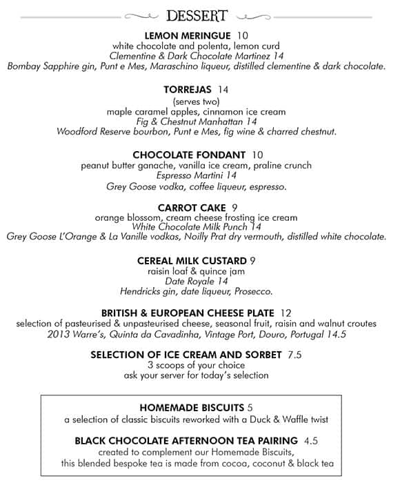 duck and waffle menu