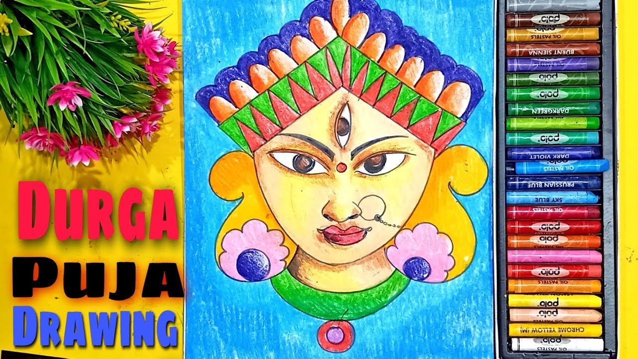 durga maa face drawing with colour