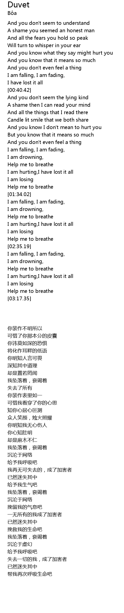 duvet lyrics