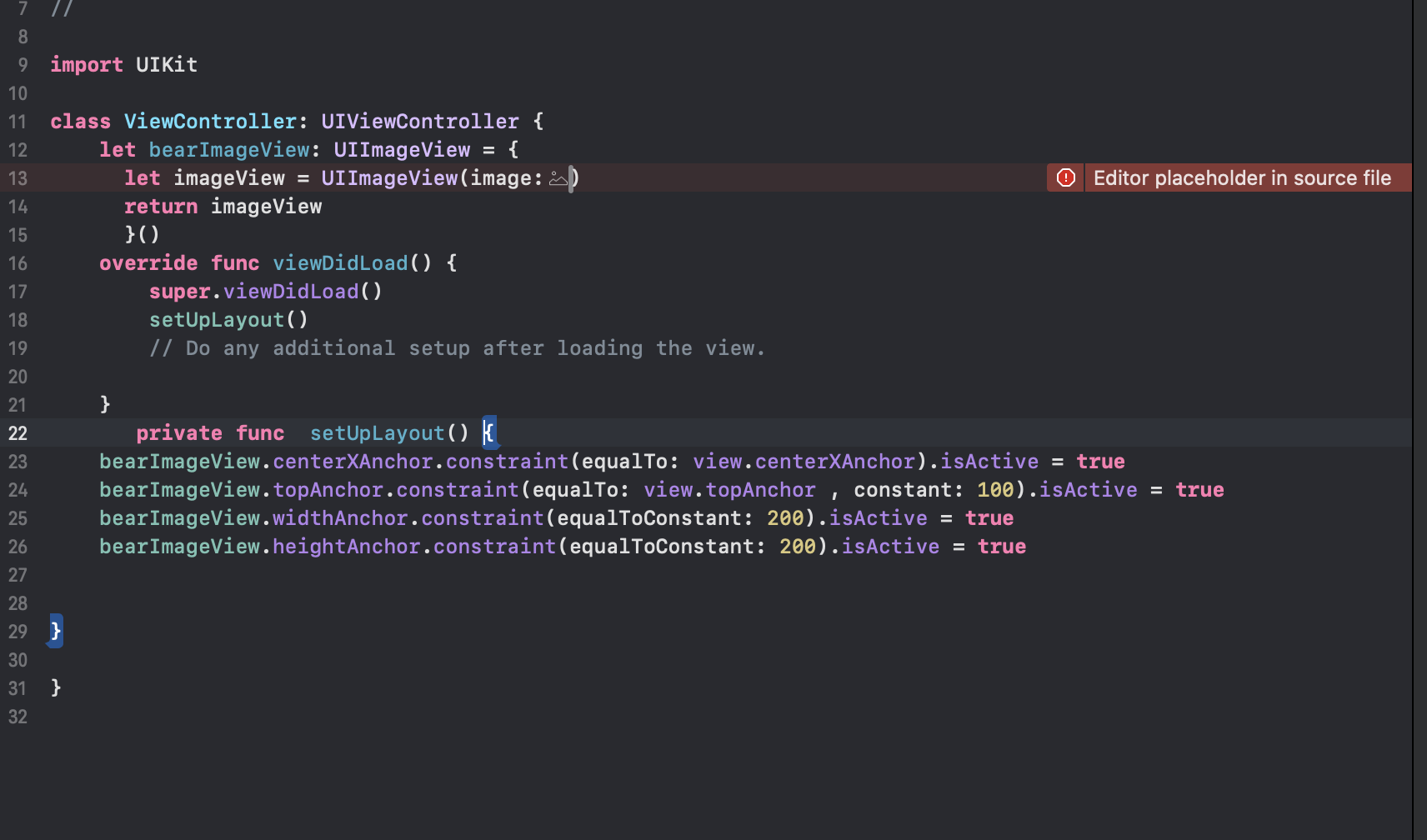 editor placeholder in source file