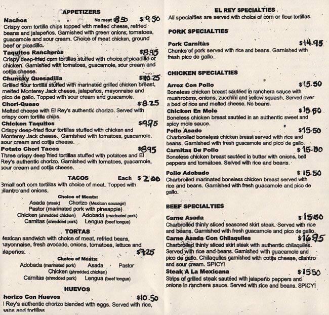 el rey menu