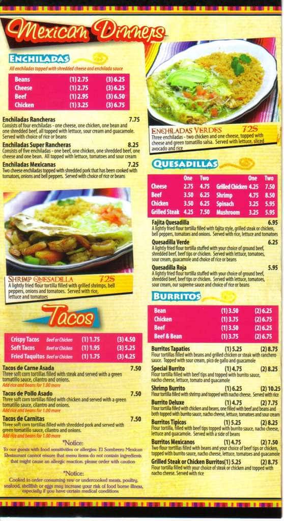 el sombrero menu