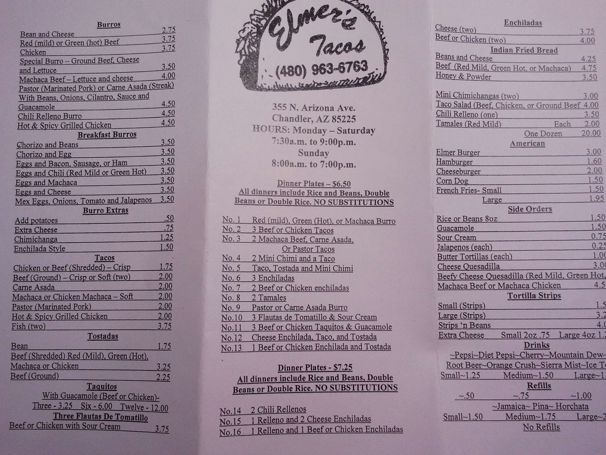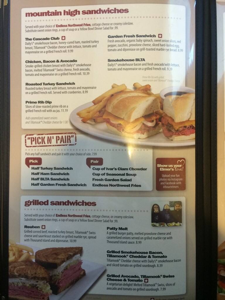 elmers menu