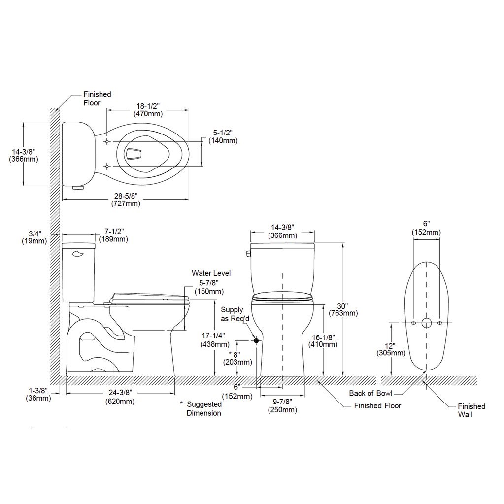 elongated toilet dimensions