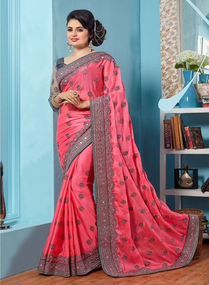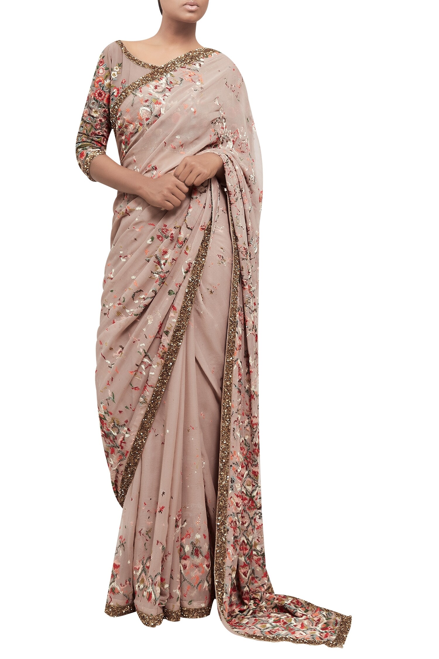 embroidery chiffon saree