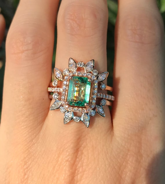 emerald halo engagement ring
