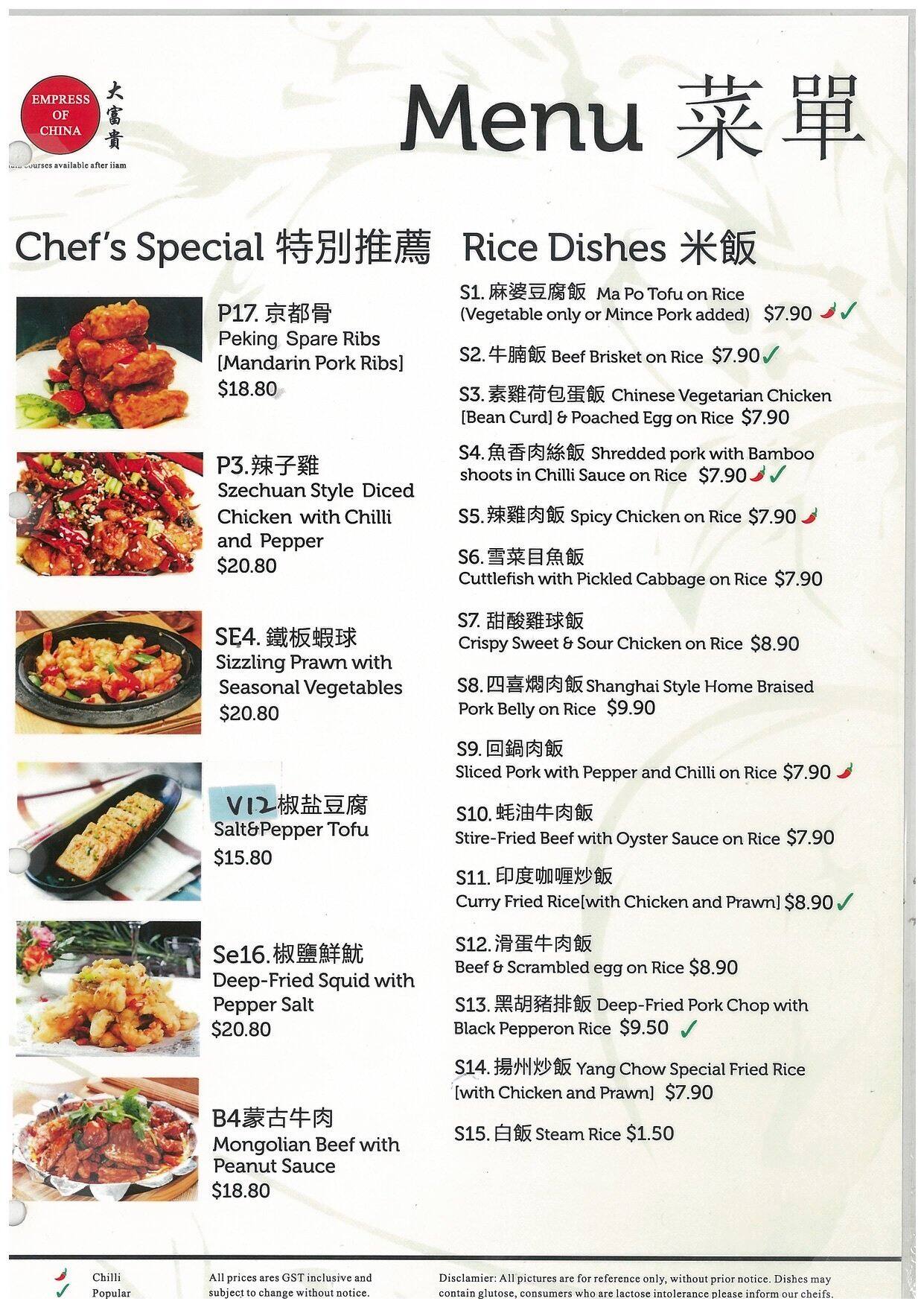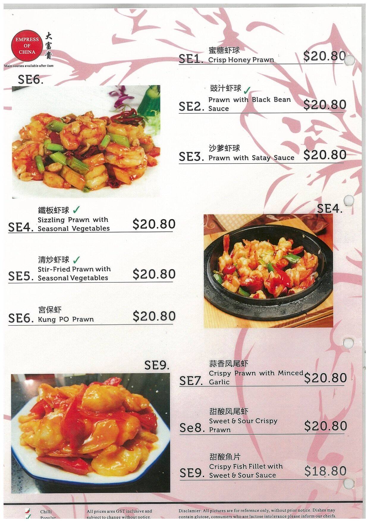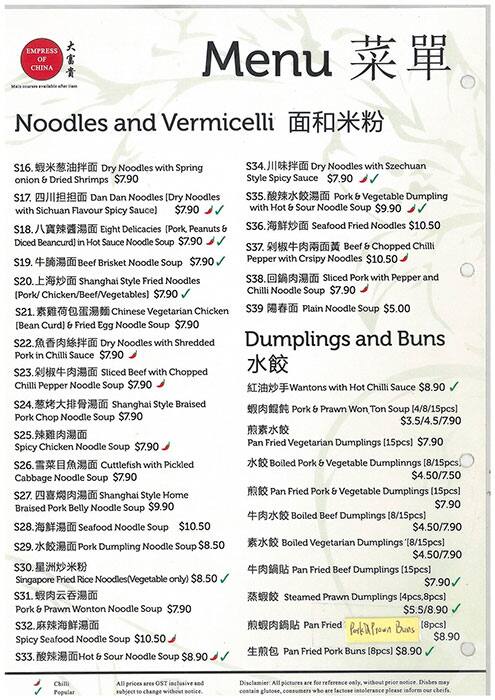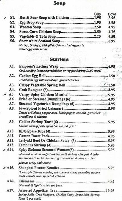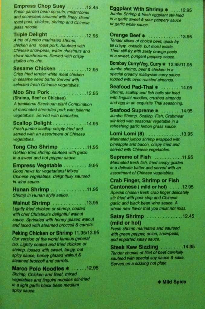 empress of china menu