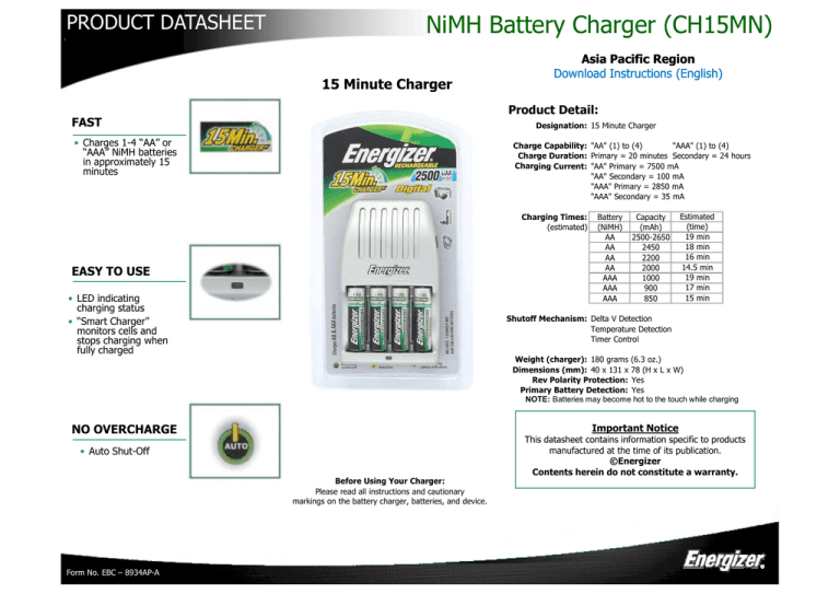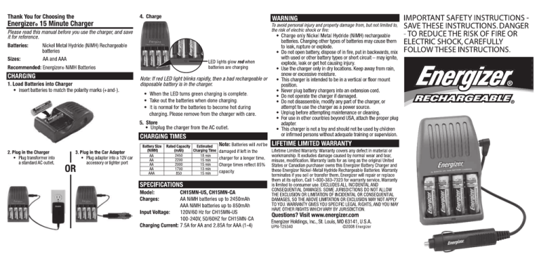 energizer 15 minute battery charger