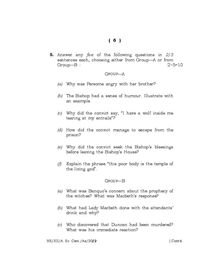 english question paper for class 12