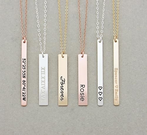 engraved bar necklace gold