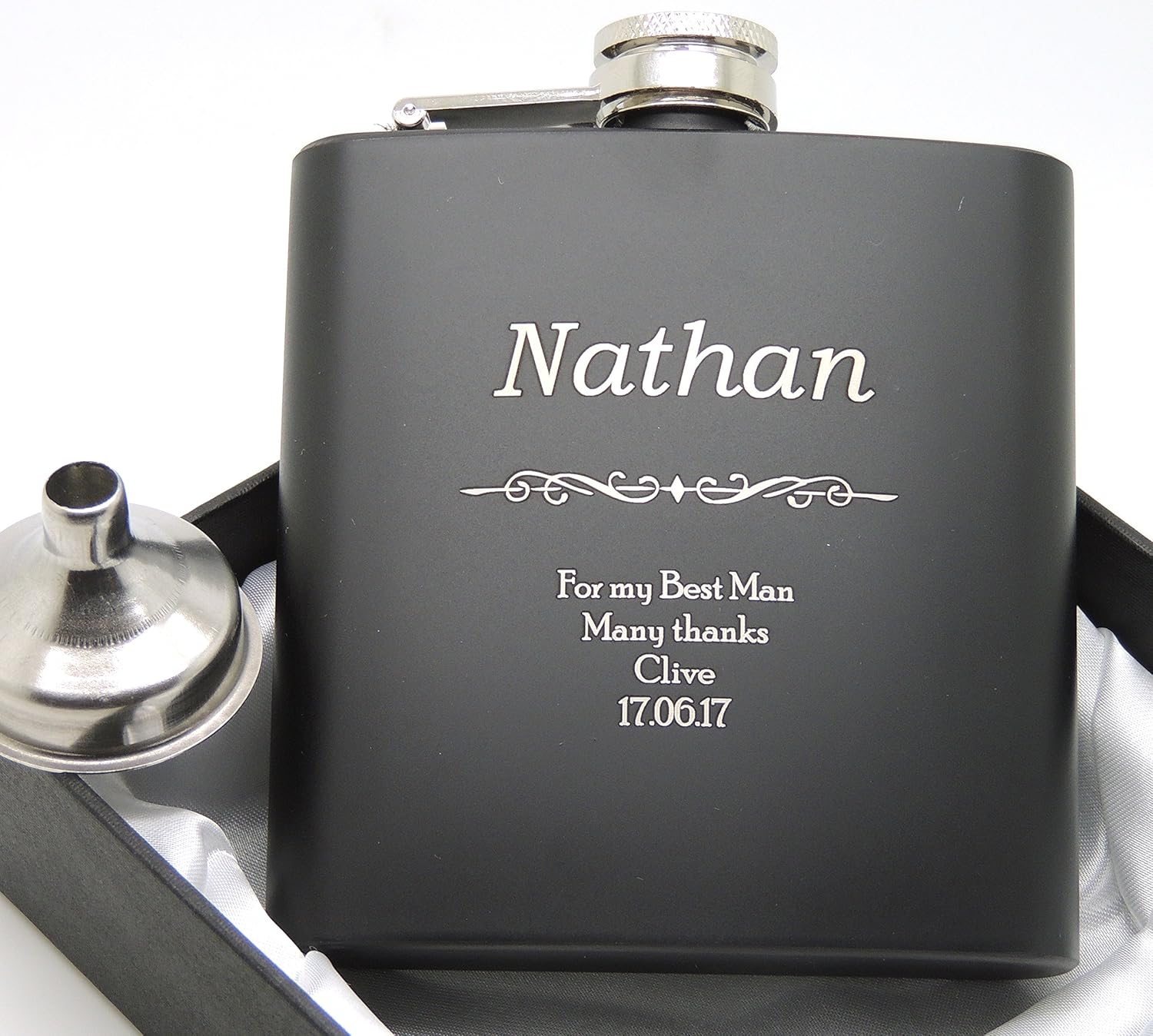 engraved hip flask