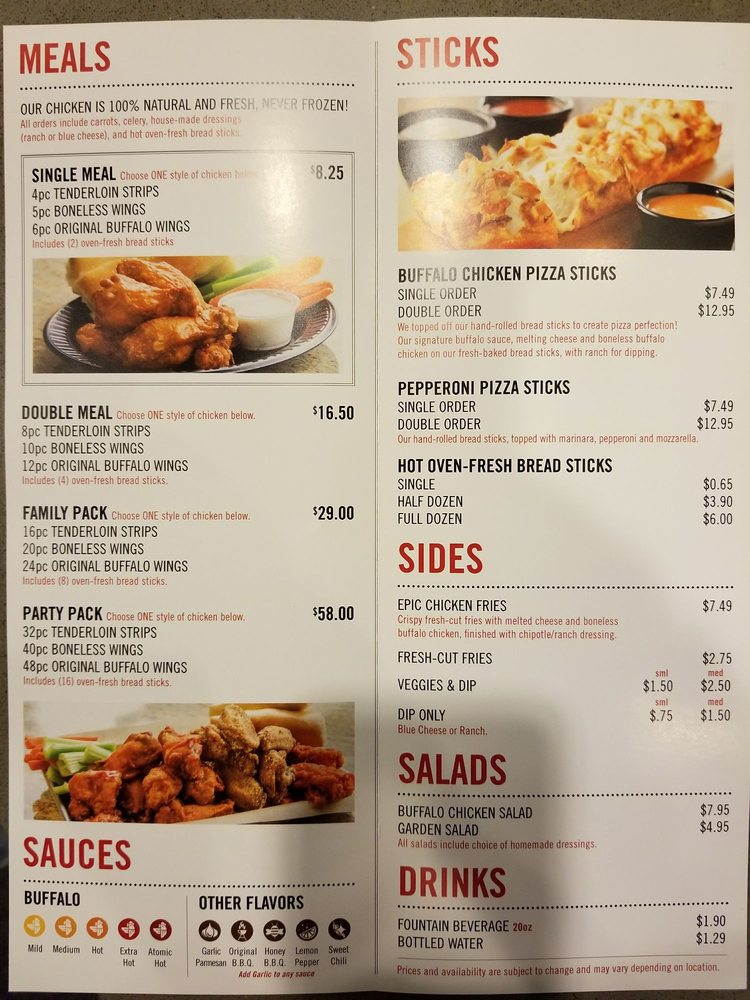 epic wings menu