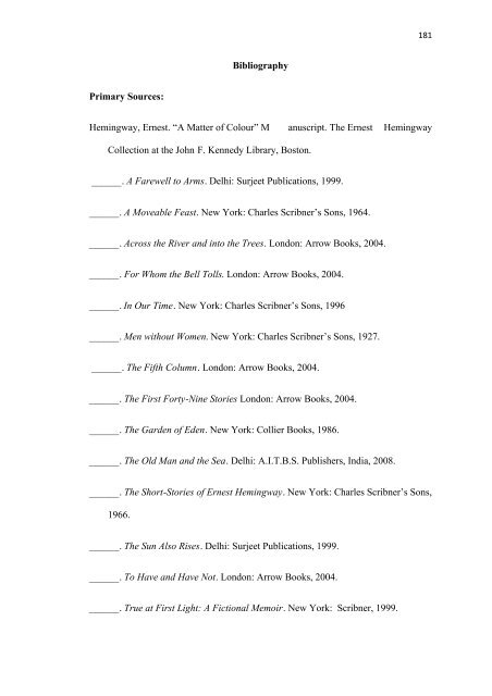 ernest hemingway bibliography