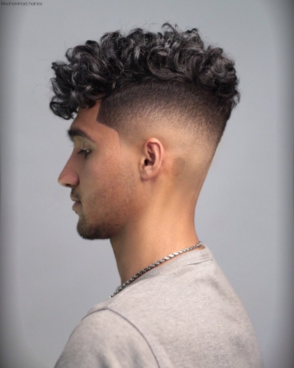 fade with curly hair on top