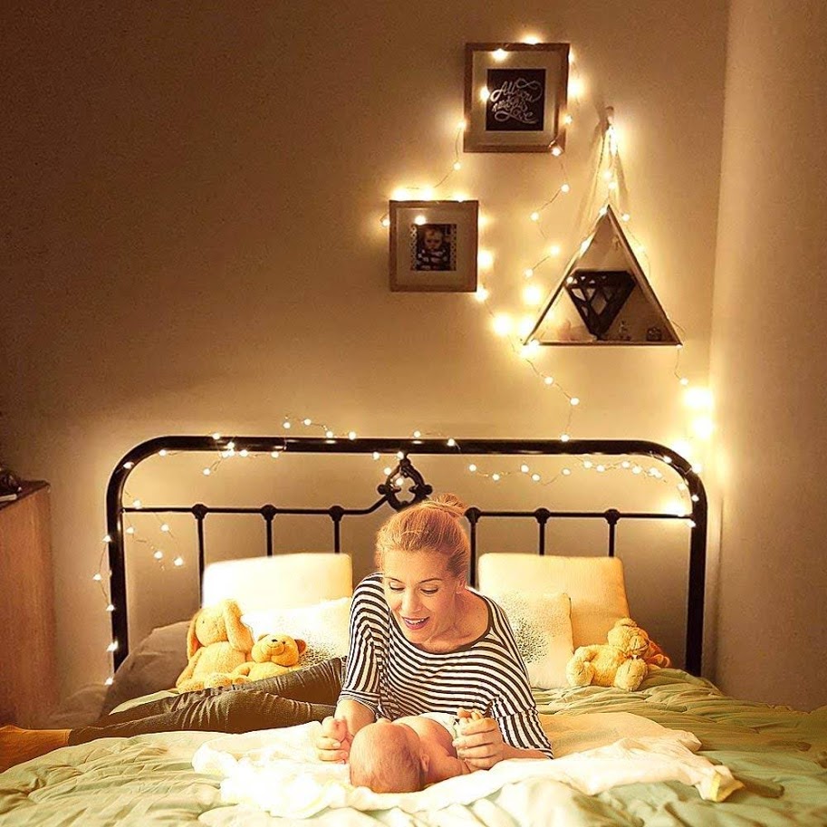 fairy lights on bed