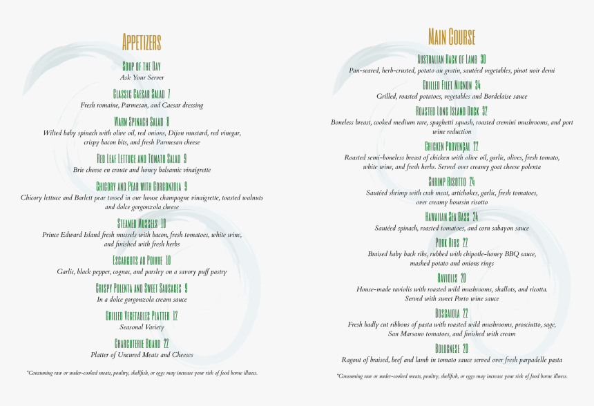 fancy restaurant menu
