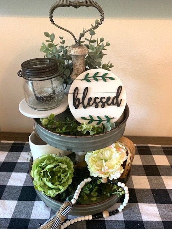 farmhouse tiered tray decor