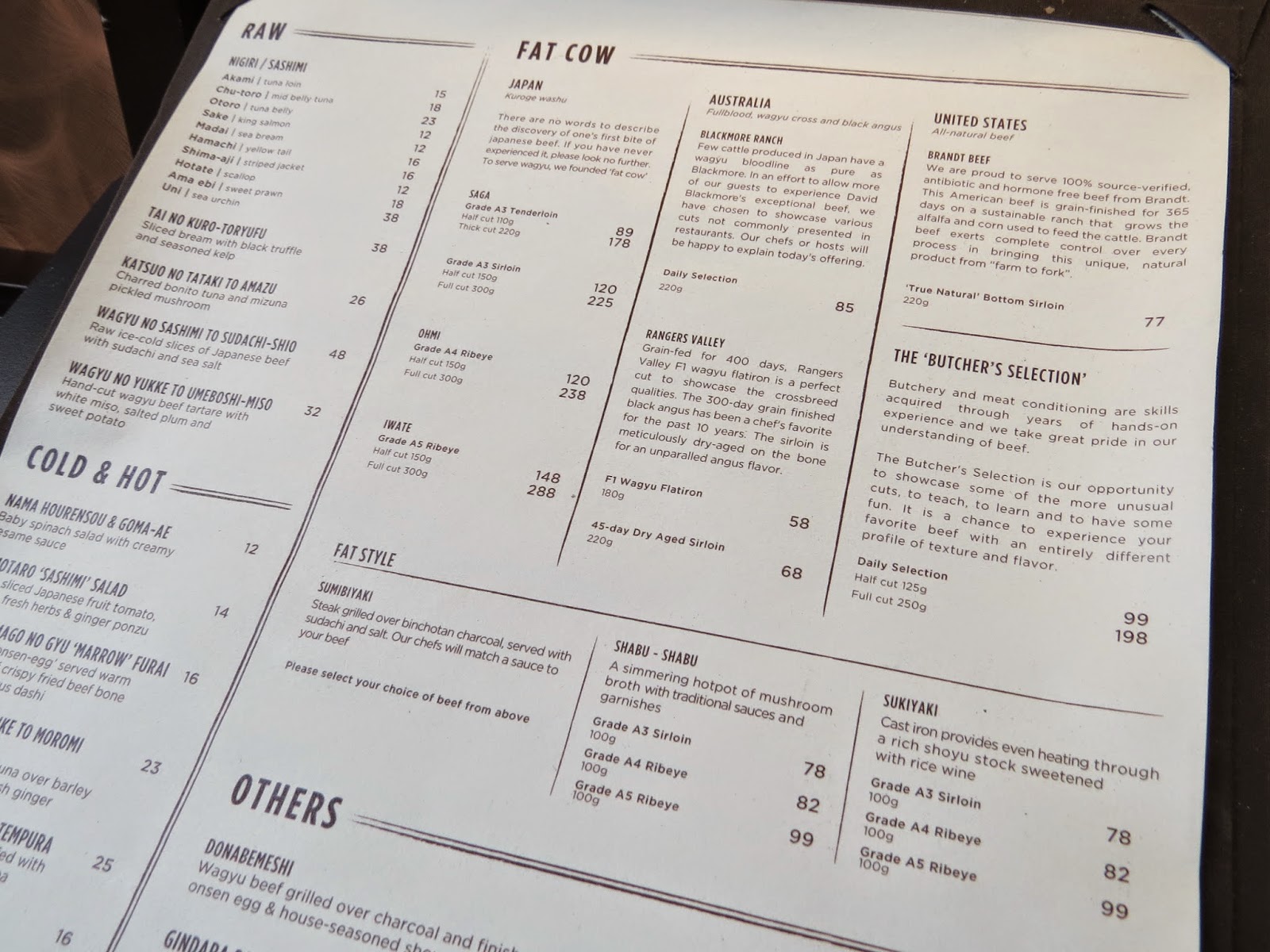 fat cow menu