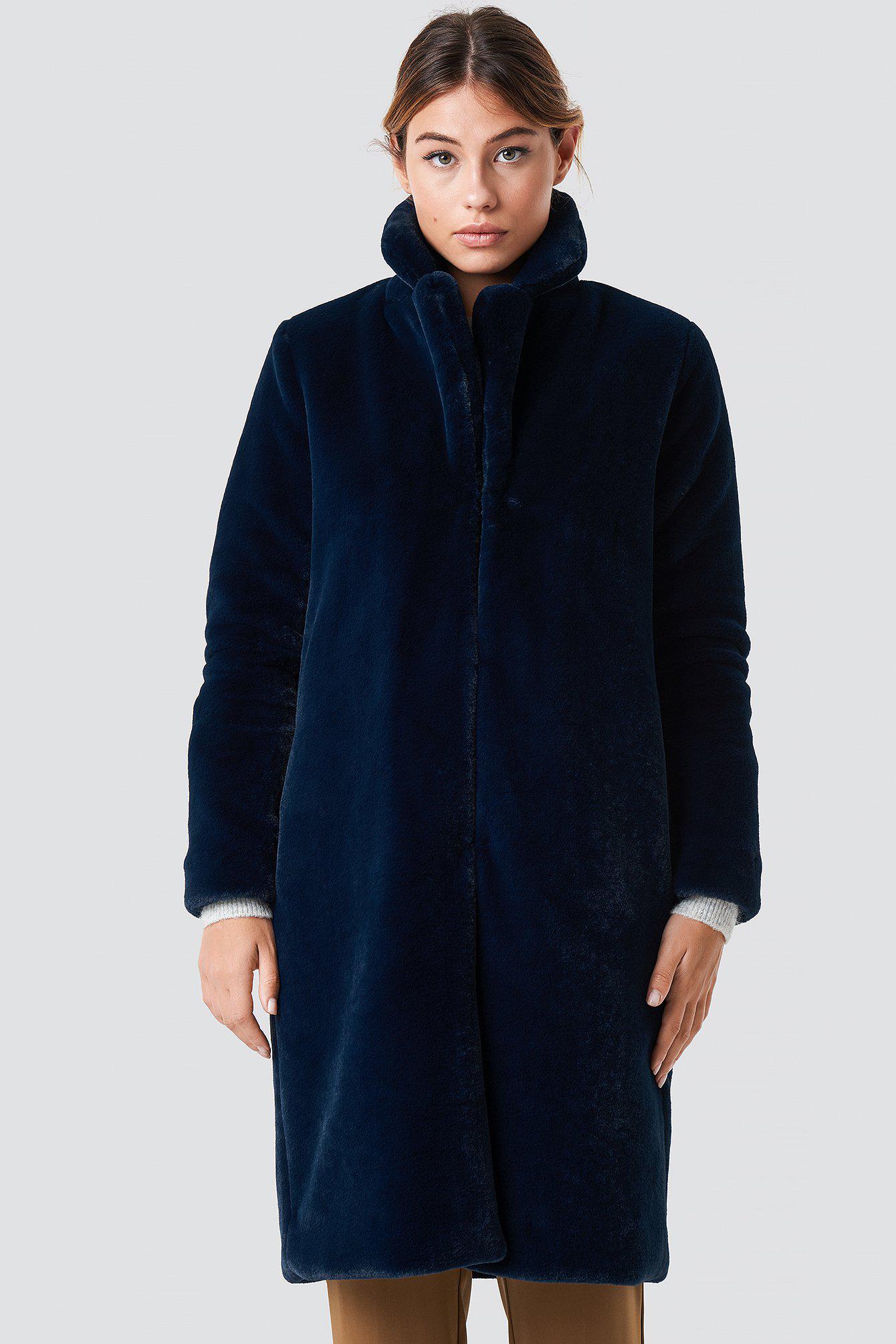 faux fur coat blue