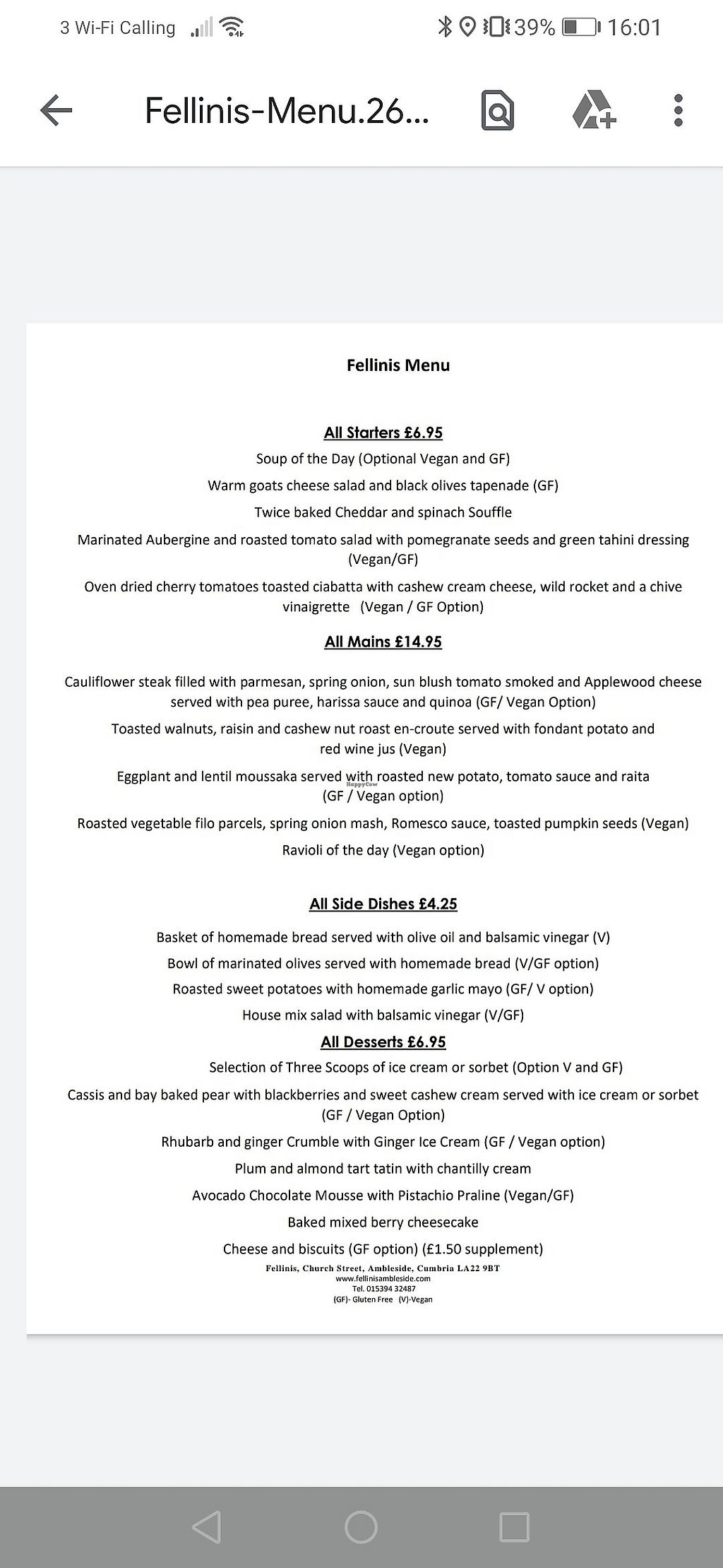 fellini's menu
