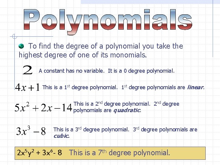 find degree of polynomial