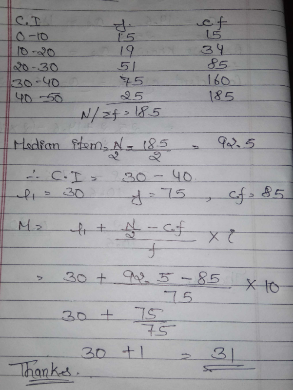 find the median of the following data