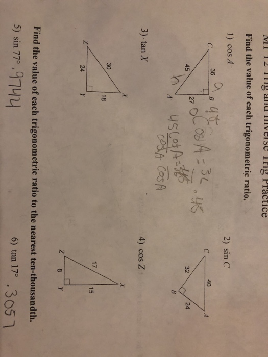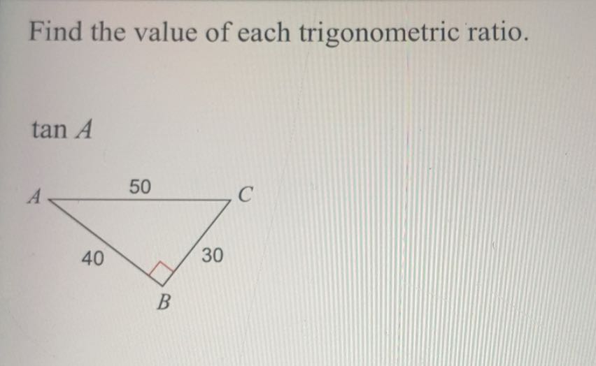 find the value of each trigonometric ratio