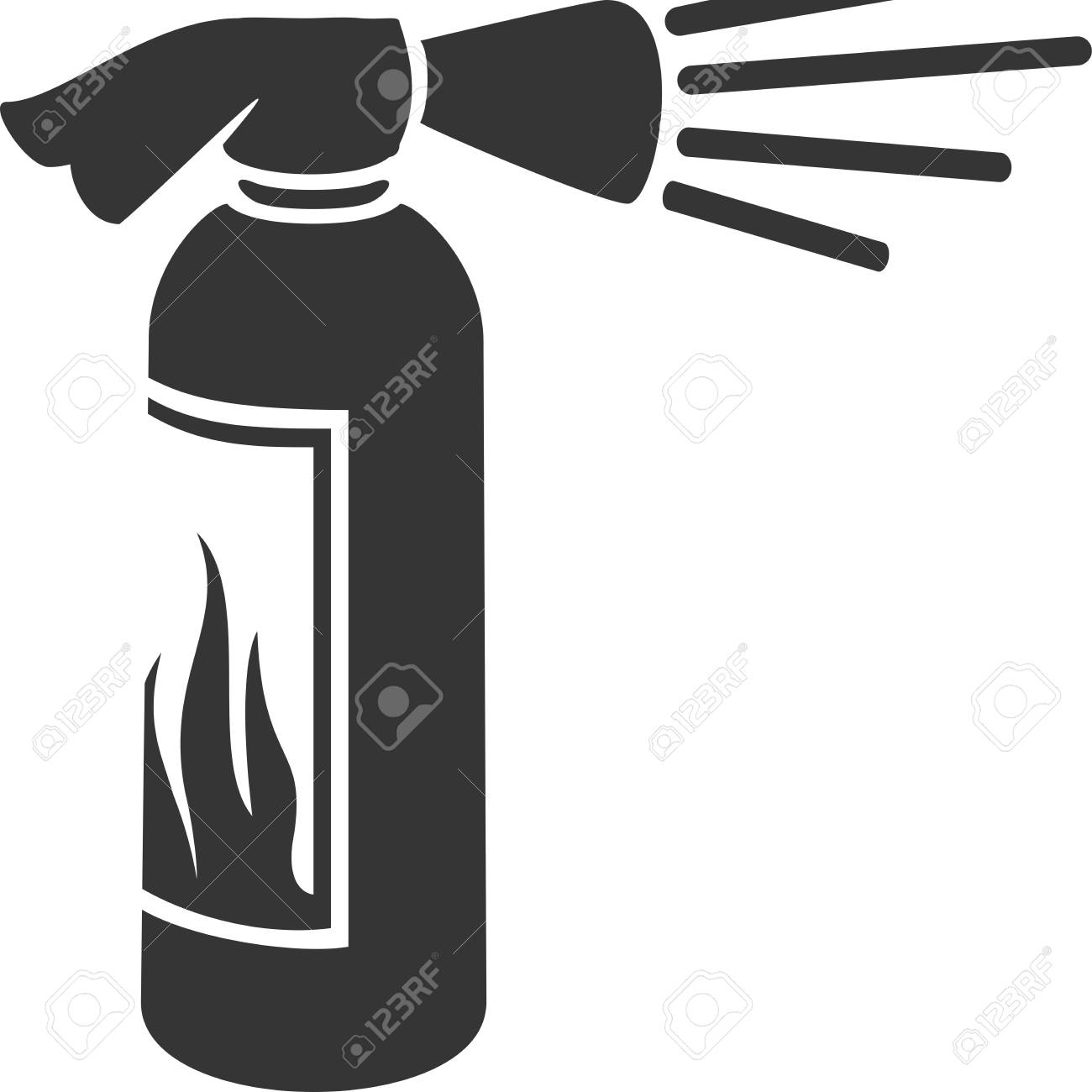 fire extinguisher with a black label