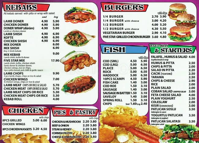 five star menu