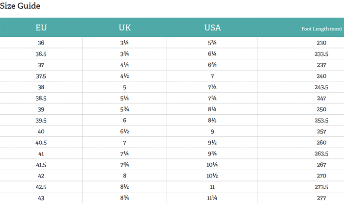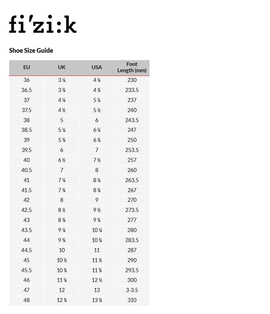 fizik shoe size chart