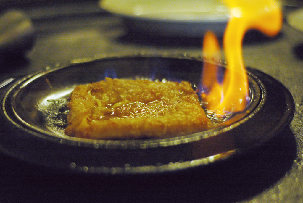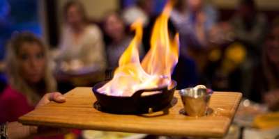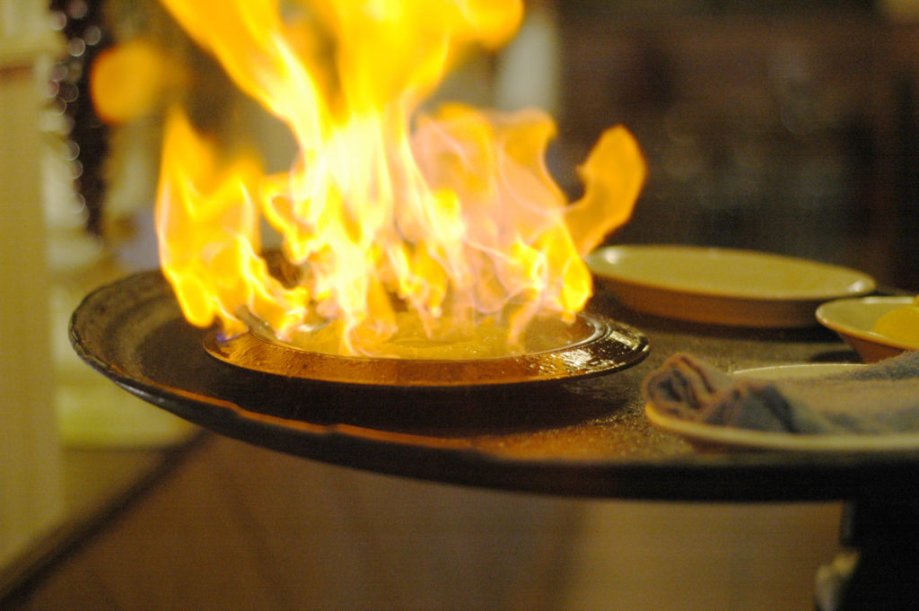 flaming cheese greek