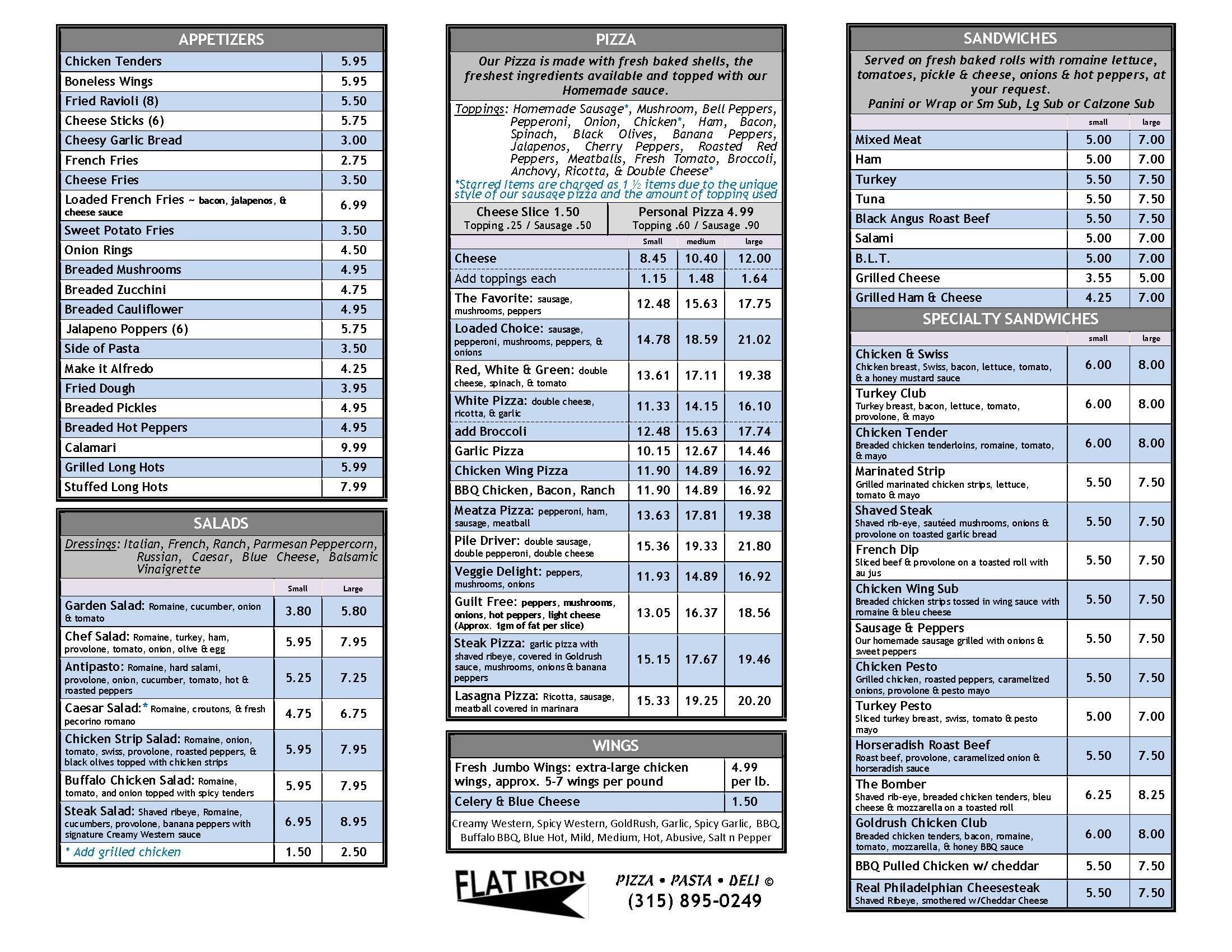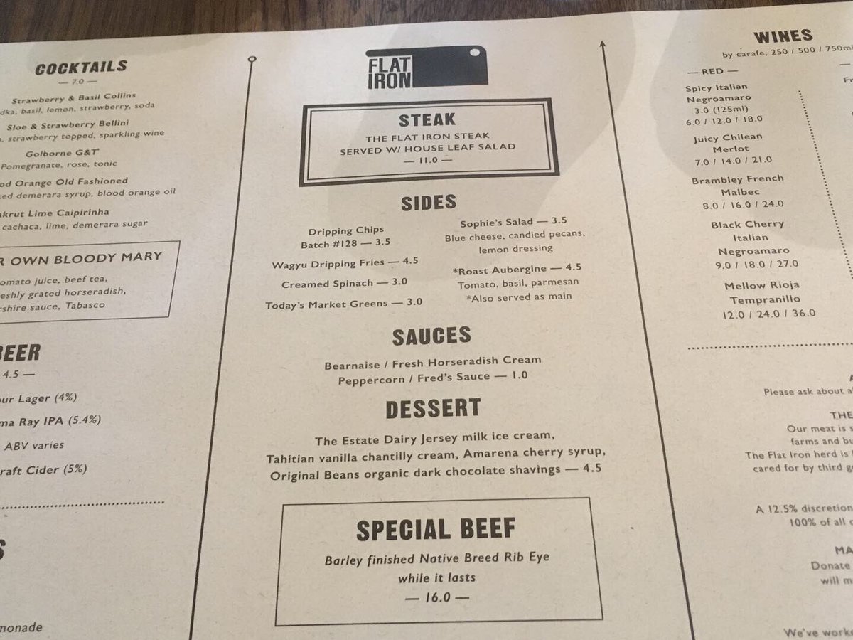 flat iron menu