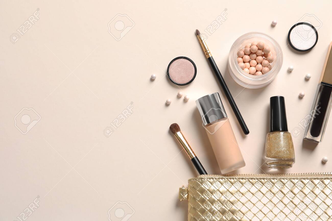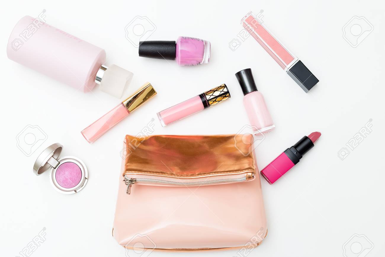 flat lay makeup bag