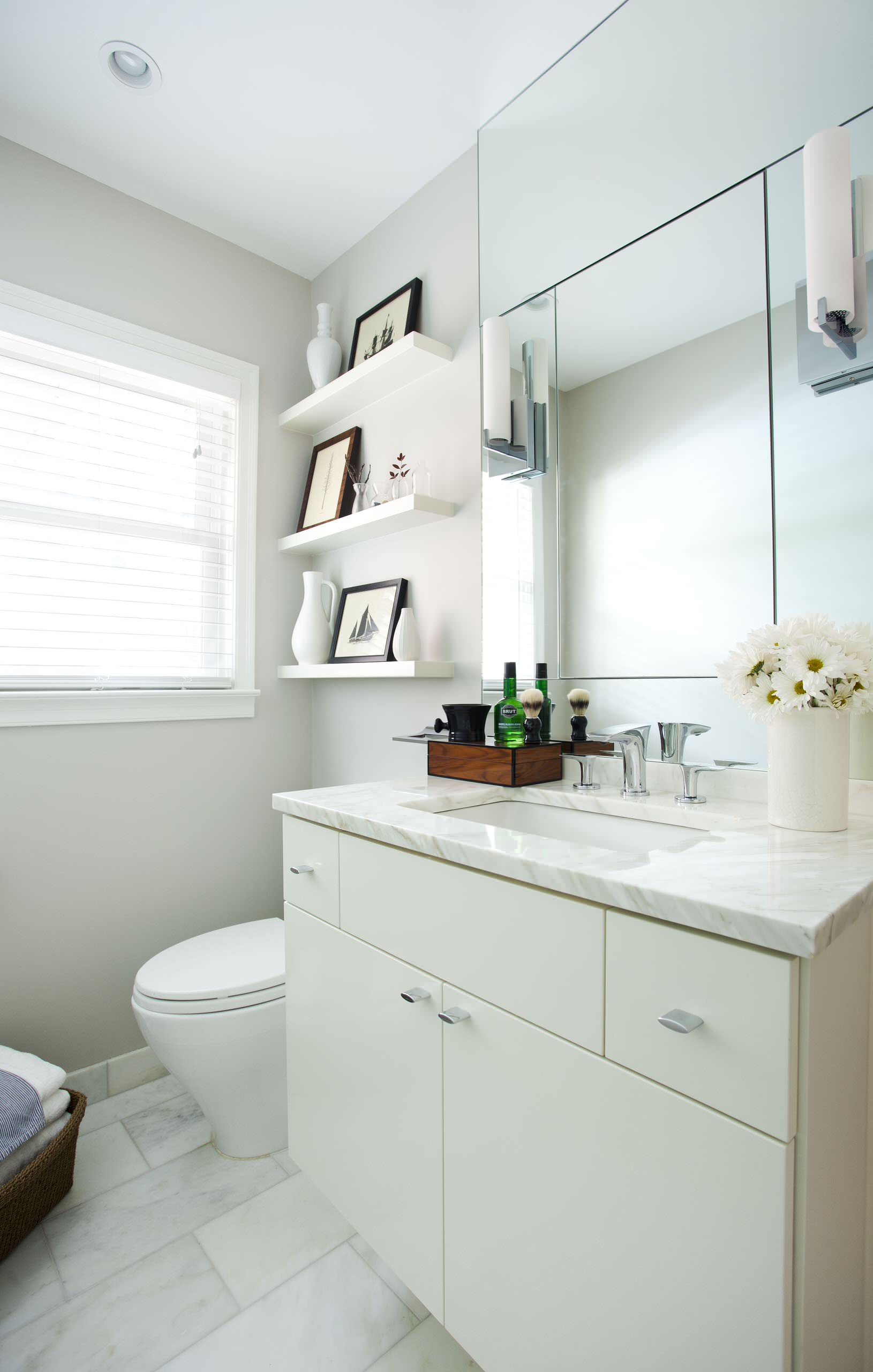 floating shelves over toilet