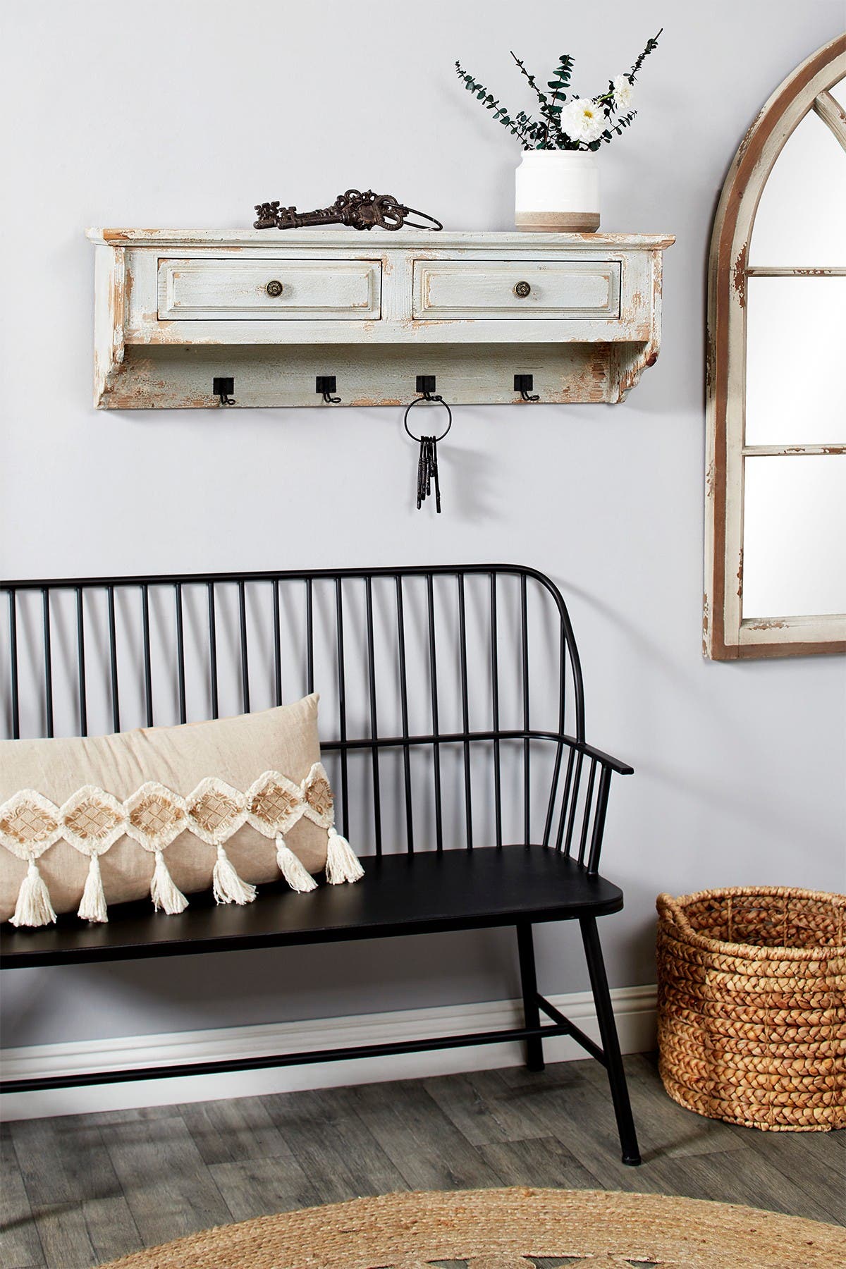 floating shelves with hooks