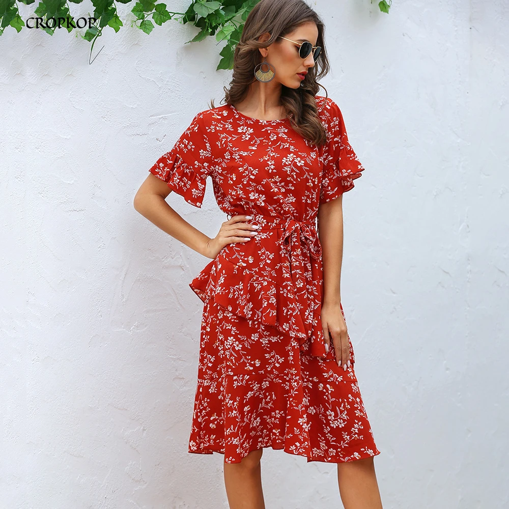 floral red dress