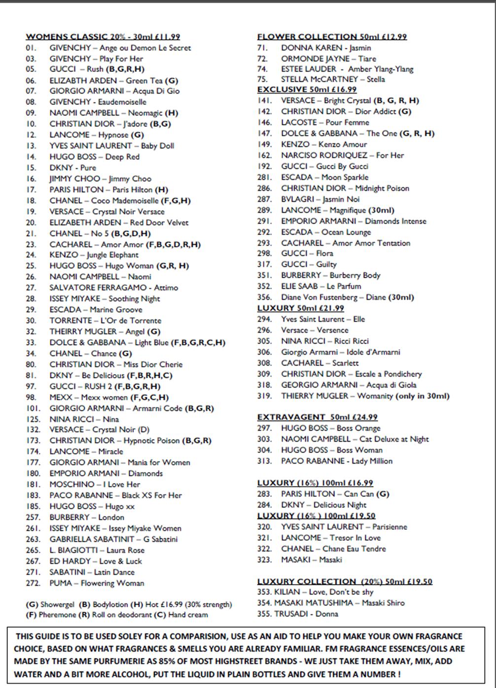 fm perfume list