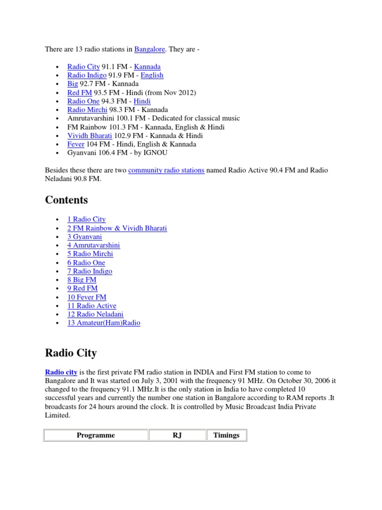 fm radio channel list