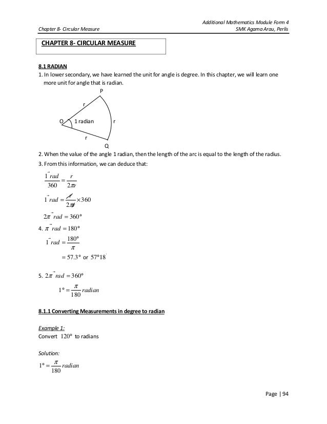 formula of radian