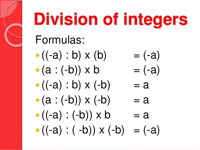 formulas of integers